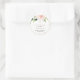 Complétez votre événement mariage classique avec cette fin douce à un nouveau sticker rond mariage classique de début. Le design est composé de fleurs roses d'aquarelle blanche aux feuilles verts, ornant un cadre géométrique doré.