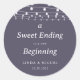 Cette fin douce à un nouveau autocollant rond classique mariage début est parfait pour un mariage simple. Le design comporte des lumières à cordes blanches dans un arrière - plan violet.