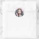 Femme soufflant Bubble bulle de gomme de couleur illustration Art classique Sticker rond