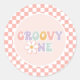 Une fille super ! Retro checker imprimé avec les stickers fête d'anniversaire de la marguerite en rose.