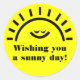 Un arrière - plan jaune vif avec un soleil souriant avec la légende "Je vous souhaite une journée ensoleillée"