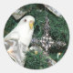 Perruche blanche ou bougie tout confortable et joli dans un arbre de Noël amoureux oiseau Noël vacances autocollant personnalisé