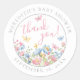 Ce charmant autocollant de remerciement est parfait pour un petit Fleur sauvage est sur le chemin ou Baby in Bloom baby shower. Au centre, un délicat agencement de fleurs sauvages d'aquarelle et de papillons clignotants crée une touche fantaisiste et élégante. Le design floral présente des teintes douces de rose, bleu, jaune et vert, apportant une touche de fraîcheur et de gaieté. Au-dessus des fleurs, "Merci !" est écrit en calligraphie de script rose, tandis que le texte supplémentaire peut être customisé avec le nom, le Baby shower et la date de l’événement de la maman-to-be dans une police serif gris moderne. Ce design simple mais élégant est entièrement personnalisable : vous pouvez ajuster le texte, les polices et les couleurs pour qu'ils correspondent à votre célébration.