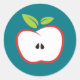 Sticker Rond Une pomme aux contours rouges et aux feuilles vert