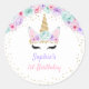 Sticker de fête d'anniversaire de la licorne. Design mignon en or parties scintillant faux avec accent floral. Violet, turquoise, or rose et blanc. Parfait pour une magique fête du 1er anniversaire.