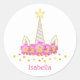 Sticker Rond Unicorne, fleurs, confettis d'or & calligraphie