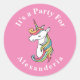 Sticker Rond Unicorne personnalisée Rainbow rose fête d'anniver