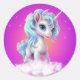 Sticker Rond Unicorne sur ciel rose/étoiles/nuage