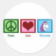 Un signe de paix vert, un coeur rouge et une jolie licorne avec une mignonne crinière violette. J'aime les animaux d'imaginaire et les licornes sont mes préférés. Ajoutez ce beau cadeau de licorne à votre collection.