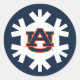 Ce motif design présente le logo emblématique "AU" de l'Université d'Auburn en bleu marine et orangé. Le mot "Auburn" apparaît dans des lettres bleu marine stylisées et majuscules aux accents orange, offrant un contraste proéminent par rapport à l'arrière - plan blanc. Une illustration supplémentaire des yeux d'un tigre, enfermé dans une forme ovale avec une bordure orange, renforce la mascotte emblématique d'Auburn. Partout, on retrouve des formes minimalistes de starburst et de petits points en bleu marine, ajoutant une touche festive et dynamique qui s'ajoute à l'esprit et aux couleurs de l'université.
