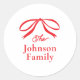 Sticker rond classique de Noël simple Bow. Cliquez sur le bouton personnaliser pour personnaliser cette conception avec votre texte.