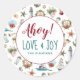 "Ahoy Love and Joy" proclame ces autocollants de Noël nautique, avec un motif de phares, voiliers et autres éléments côtiers avec des décorations festives.
