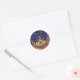 Sticker Rond Vaisseau antique, Dauphins, Or, Bleu marine "Merci