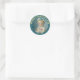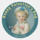 Autocollant de Saint-Valentin arrondi inspiré d'un beau portrait d'enfant de style pastel du peintre français Rococo Jean-Honoré Fragonard (Un garçon nommé Pierrot, c.1785). Il montre un petit garçon aux cheveux clairs en costume de Pierrot blanc surdimensionné. Le garçon a une expression d'attente heureuse et il porte un bouquet de fleurs rouges et bleues dans ses bras. Personnalisez l'autocollant simplement en tapant sur les exemples de textes. Pour plus de personnalisation, cliquez sur le bouton Personnaliser et utilisez l'éditeur de design.