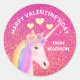 Sticker Rond Valentines Day Unicorn rose Parties scintillant Co