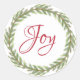 Elégante et moderne enveloppe ou autocollant cadeau pour Noël avec le texte "Joy" en calligraphie de script chic rouge et une élégante couronne de verdure d'hiver sur un arrière - plan blanc. Conçu exclusivement pour vous par Happy Dolphin Studio. Si vous avez besoin d'aide ou de produits correspondants, veuillez nous contacter par l'intermédiaire de notre conversation de magasin!