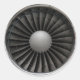 Vue frontale d'un moteur à turbine moderne montrant les pales de ventilateur et le capot brillant du moteur en argent.