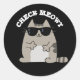 Sticker Rond Vérifier Meowt Funny Cool Chat Pun Dark BG