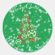 Sticker Rond Vert Animal Paw Silhouette Arbre de Noël Vert