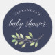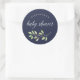 Sticker Rond Vert feuilles | Aquarelle Baby shower bleu foncé
