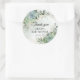 Verdure succulents eucalyptus merci baby shower classique autocollant rond monogramme Un design boho vraiment étonnant qui a captivé toutes les célébrations et événements au cours des dernières années, à savoir un bouquet somptueux - un mélange de succulents et d'eucalyptus vert, élégamment tissé autour d'un cadre géométrique en faux or. Vous pouvez être sûr qu'avec ce design pour votre papeterie pour l'événement, vous serez top moderne et extrêmement impactable, et votre événement sera mémorisé pendant longtemps. Le design est présenté aquarelle de fleurs succulentes peintes à la main dans vert foncé, vert foncé, vert foncé, vert sauge et bleu poussiéreux, gracieusement combiné avec des branches d'eucalyptus vertes, et délicat tissé autour d'un cadre géométrique faux or - si moderne terrarium récent. Tout ce bouquet somptueux de succulents enveloppe élégamment les inscriptions du centre, comme si tendre étreinte d'amour. Dans ce magnifique design branché nous avons préparé tous les éléments nécessaires pour votre événement boho fêté - comme des invitations pour mariage, fiançailles, elopement, anniversaire, jeux, affiches de bienvenue, panneaux de table et bien plus encore, afin que vous puissiez obtenir un ensemble complet de ce design boho exceptionnel avec une aquarelle succulents fleurs mélangé vert pastel eucalyptus feuillage, feuilles sauge vert tissé dans cadre or. Contactez-moi pour les articles correspondants ou pour la personnalisation, Roses Blush ©