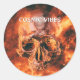 Sticker Rond Vibes Cosmiques. Crâne flamboyant dans l'espace
