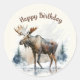 Mignons autocollants d'anniversaire avec une aquarelle d'orignal. Vous pouvez customiser les autocollants en ajoutant un nom.