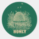 Vintage bee skep in meadow with hovering bees from a vintage plate print. Harken back to a time when a bee hive was part of a cottage garden; or celebrate your homesteading honey.