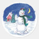 Illustration vintage image des fêtes de Noël montrant un bonhomme de neige la nuit.