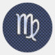 Sticker Rond Virgo Zodiac Silver Sign Blue Carbon Fibre Print