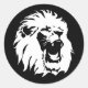 Le lion rugissant fait face à un design graphique simple en noir et blanc dans le style d'une oeuvre d'art au pochoir. Pour les amateurs de faune et de lions.