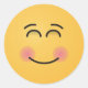 Un visage souriant, avec des yeux souriants et des joues roses.