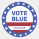 Cet autocollant bleu vote avec le design inspiré du drapeau américain du texte bleu et bleu vote audacieux, rayures blanches et rouges dans un cercle bleu décoré d'étoiles blanches est un bon choix pour express votre message de campagne électorale politique.