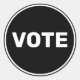 Encourager les citoyens à s'inscrire pour voter avec ces autocollants noirs et blancs. Les autocollants sont noirs. Le mot vote est au centre. Le texte est blanc.