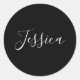 Sticker Rond Votre nom | Élégant script blanc sur noir