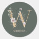 Lettre W monogramme floral. Lettre W en texture brun doré accentué de feuilles verts composés d'aquarelle, fleurs de fleurs et poussière d'or. Personnalisé avec nom dans la police correspondante.