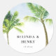 Élégant autocollant de mariage de palmier aquarelle. Personnalisez simplement le/les nom(s) et date.
