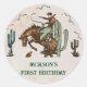 Sticker rond classique pour la fête d'anniversaire de Western Cowboy