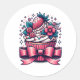 Graphiques d'un cupcake aux fraises roses avec des fleurs et un arc.