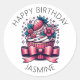 Sticker Rond Whimsical de cupcake de fraise personnalisée