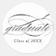 Sticker blanc moderne élégant pour la graduation de script classique rond dispose d'un script magnifique et élégant, ainsi que votre année de classe.