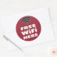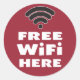 WiFi gratuit sticker ici avec police amusante et icône WiFi. Modifiez la couleur de l'arrière - plan si vous le souhaitez. Avertissez les clients que le service Internet gratuit est disponible dans votre entreprise.