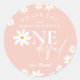 Wild un 1er anniversaire boho retro rose pâle pâté rose floral classique autocollant rond.