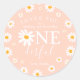 Sauvage un 1er anniversaire de fête Boho Retro Peach Daisy Classic Round Sticker