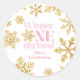 Sticker Rond Winter Onederland Pink Gold Snowflake 1er annivers