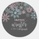 Sticker Rond Winter Onederland Rose bleu argent parties scintil