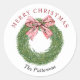 Sticker Rond Winter Pine Wreath Striped Red Bow Merry Christmas
