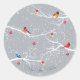 Jolie scène d'hiver avec des branches blanches, des oiseaux colorés, de la neige tombante et de belles décorations de Noël. Superbes paysages hivernaux avec des oiseaux en jaune, orange, bleu et rouge, décorations de Noël et cloches de Noël. Personnalisez en changeant le texte.