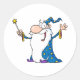 Sticker Rond Wizard Waving And Cape Holding A Magic Wand