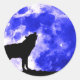Sticker Rond Wolf Howling à la nuit bleue de la lune